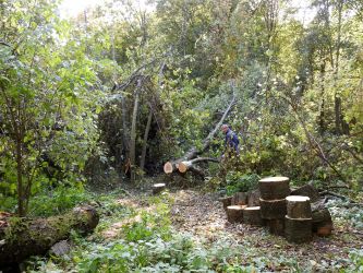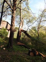 Szkoda pięknego starego drzewa i części naszej „dżungli”, która została pogrzebana pod ciężkimi konarami. Pod chałupą zrobiło się teraz strasznie łyso… 🙁 Ale całe szczęście, że dachu nad głową już na starcie nie straciliśmy. A przynajmniej o opał nie musimy się martwić, starczy pewnie jeszcze na następną zimę. Tylko roboty od groma, żeby to wszystko teraz pociąć i poskładać…